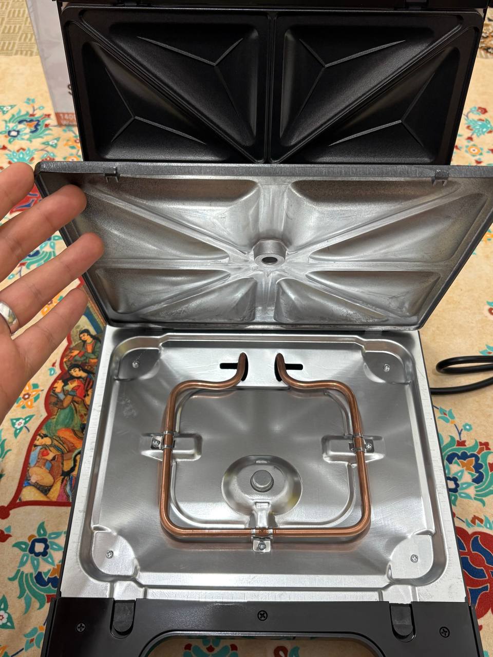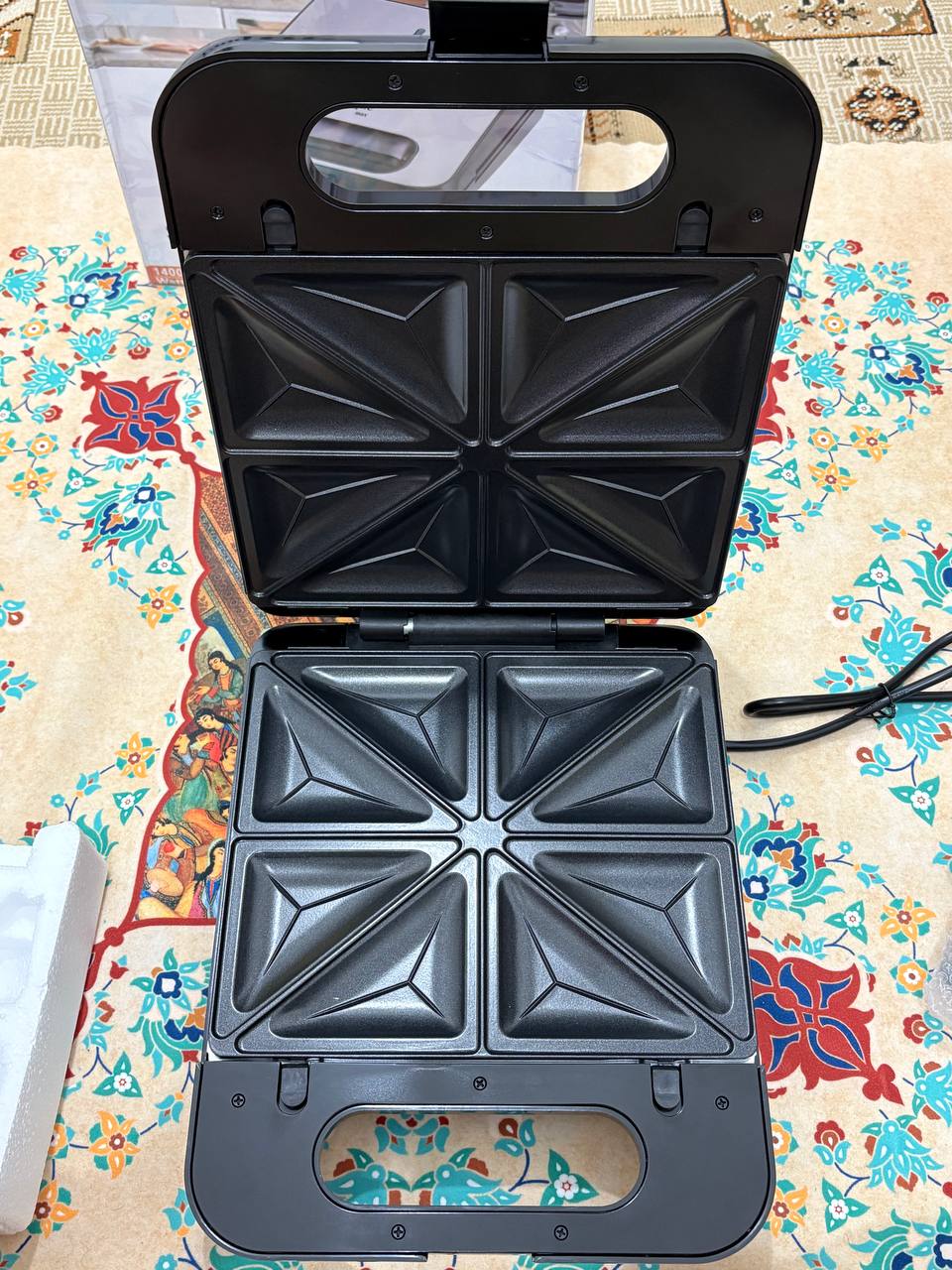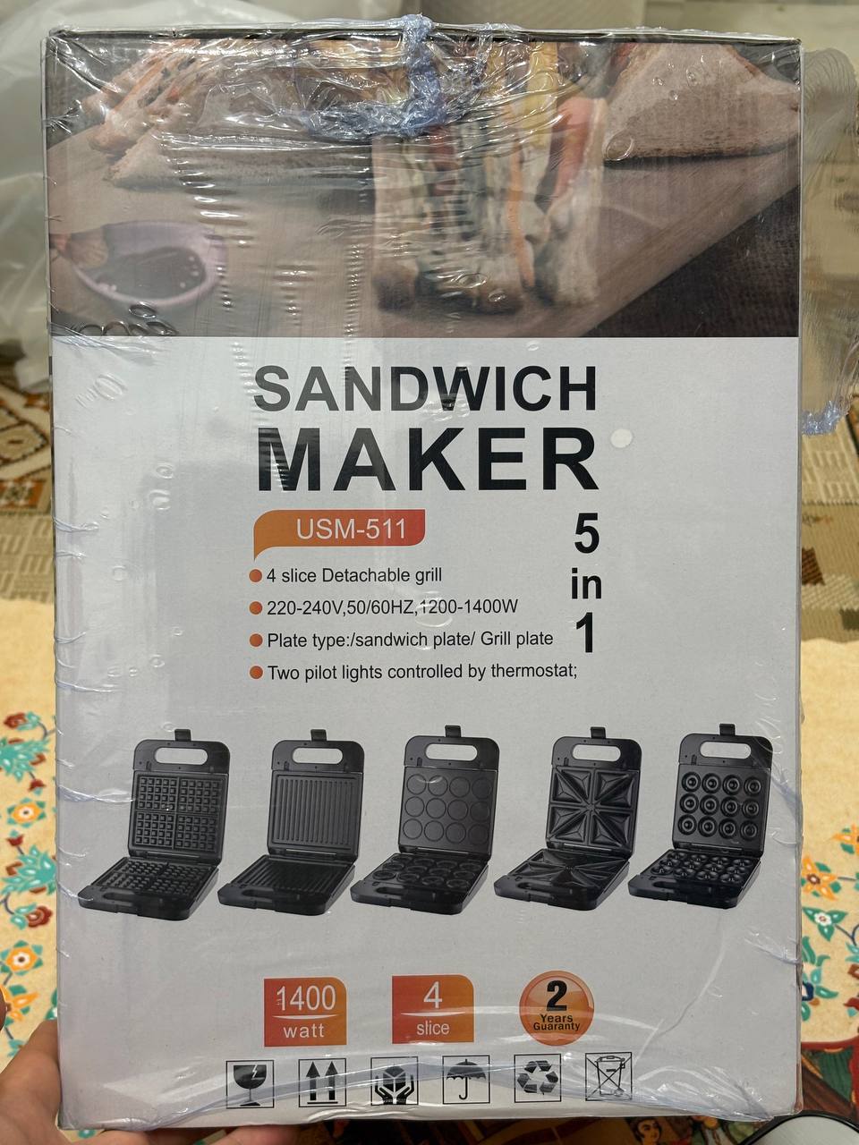 Unique Max 5-in-1 Sandwich Maker Model USM-511 with Interchangeable Plates دوست عزیز، اگر صبحانه یا میان‌وعده‌های سریع، متنوع و خوشمزه دوست داری، این اسنک ساز ۵ کاره یونیک مکس مدل USM-511 دقیقاً همون چیزیه که آشپزخونه‌ت نیاز داره! با ۵ صفحه قابل تعویض، می‌تونی در کمترین زمان ساندویچ‌های مثلثی ترد، وافل‌های طلایی، دونات‌های خانگی، بیسکویت‌های گل‌دار و حتی گوشت یا سبزیجات گریل‌شده آماده کنی. تصور کن صبح‌ها وافل تازه با میوه، یا عصرها اسنک پنیر و ژامبون داغ برای بچه‌ها – همه‌شون بدون دردسر و با طعم حرفه‌ای! بدنه استیل ضدزنگ و مقاومش هم خیلی شیکه و به راحتی تمیز می‌شه. صفحات نچسب هستن، پس مواد غذایی بهشون نمی‌چسبه و شستشوشون مثل آب خوردنه. چراغ‌های نشانگر قدرت و آماده بودن، کار رو امن و ساده کرده – فقط صفحه مورد نظرت رو بذار، مواد رو بریز و چند دقیقه صبر کن تا غذای داغ و کریسپی آماده بشه. ایدئال برای خانواده‌ها، دانشجوها یا حتی مهمونی‌های کوچک! ویژگی,جزئیات برند,Unique Max مدل,USM-511 نوع,اسنک ساز و ساندویچ ساز ۵ کاره با صفحات قابل تعویض عملکردها,ساندویچ مثلثی، وافل مربعی، گریل (شیاردار)، دونات، بیسکویت گل‌دار صفحات,۵ جفت صفحه نچسب و قابل جدا شدن بدنه,استیل ضدزنگ با طراحی مدرن و مقاوم کنترل,چراغ نشانگر قدرت (قرمز) و آماده بودن (سبز) تمیزکاری,صفحات نچسب، آسان برای شستشو مزایا,پخت سریع، تنوع بالا، مناسب خانواده این مدل یونیک مکس با تنوع صفحاتش، واقعاً یه آشپز چندکاره تو خونه‌ته! مشتری‌ها از کیفیت ساخت، سرعت پخت و راحتی تعویض صفحاتش خیلی راضی هستن. اگر می‌خوای صبحانه و میان‌وعده‌هات رو هیجان‌انگیز کنی، همین حالا به سبد خریدت اضافه کن و لذت ببر 😋