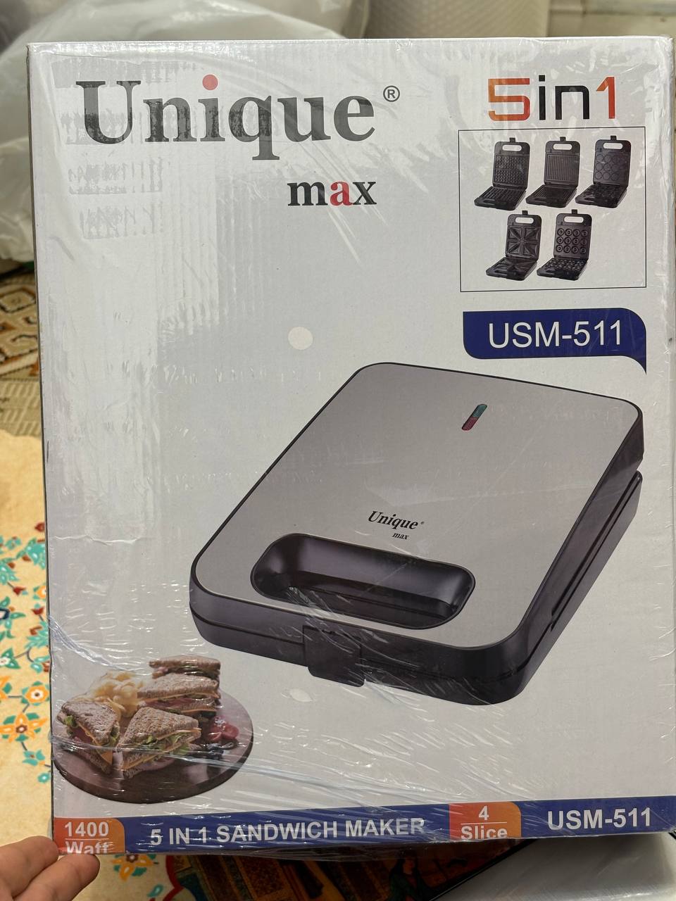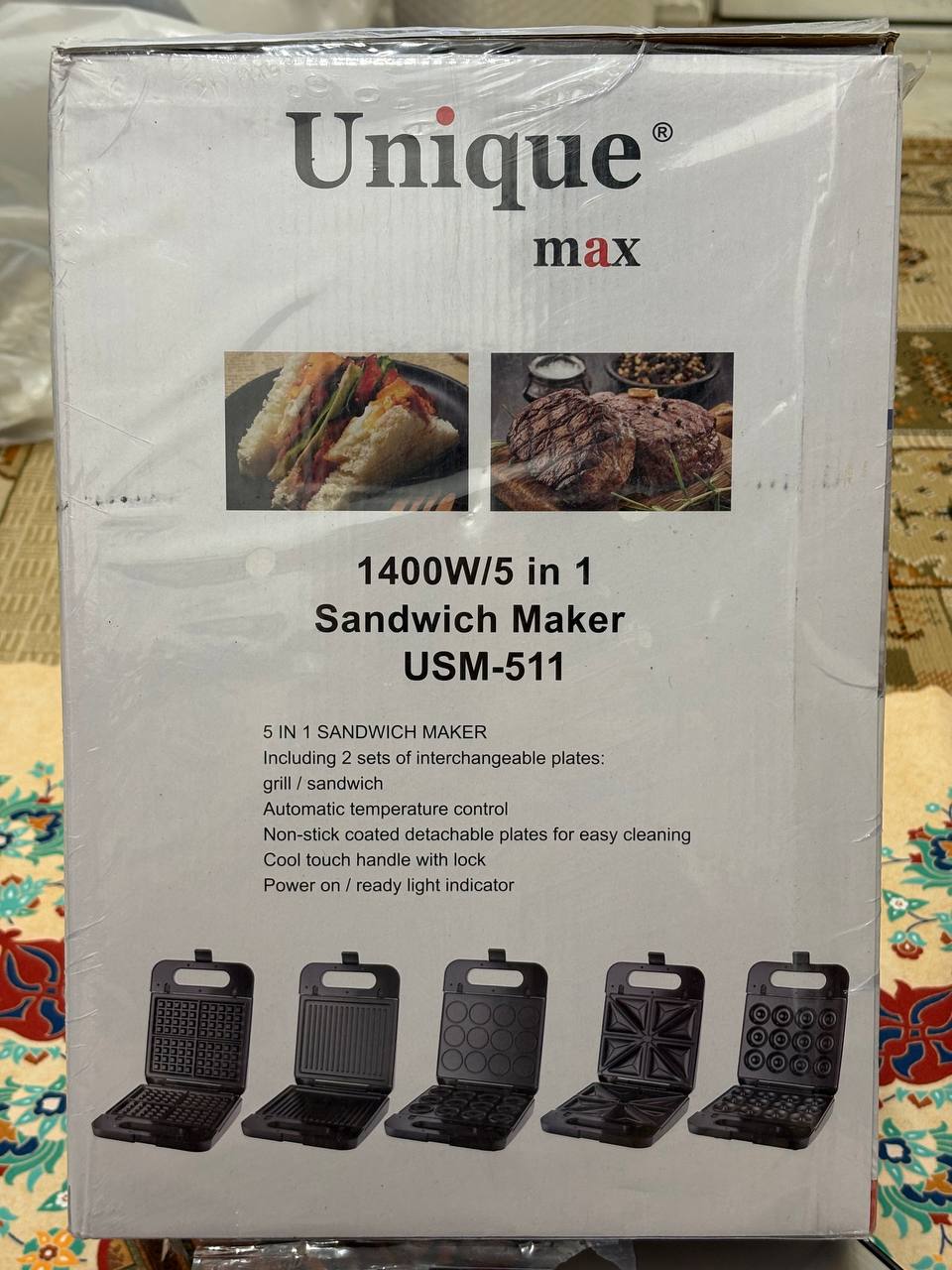 اسنک ساز و ساندویچ ساز یونیک مکس مدل USM-511 پنج کاره با صفحات قابل تعویض (Unique Max USM-511 5 in 1 Sandwich Maker)