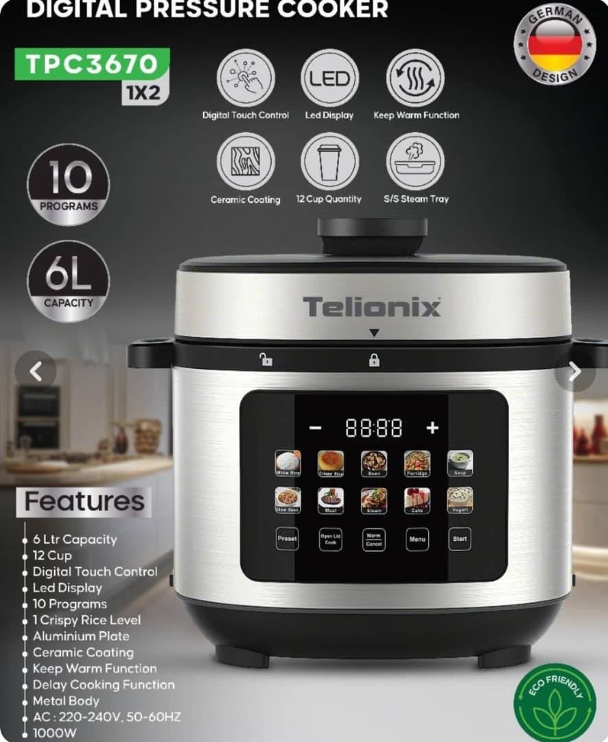 زودپز و پلوپز دیجیتال ۶ لیتری تلیونیکس مدل TPC 3670 – Telionix TPC-3670 Digital Pressure Cooker
