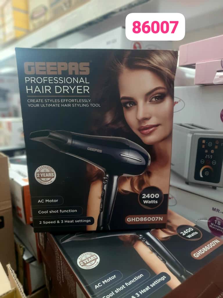 سشوار حرفهای جیپاس GHD 86007 N – Geepas GHD86007N Professional Hair Dryer 2400W