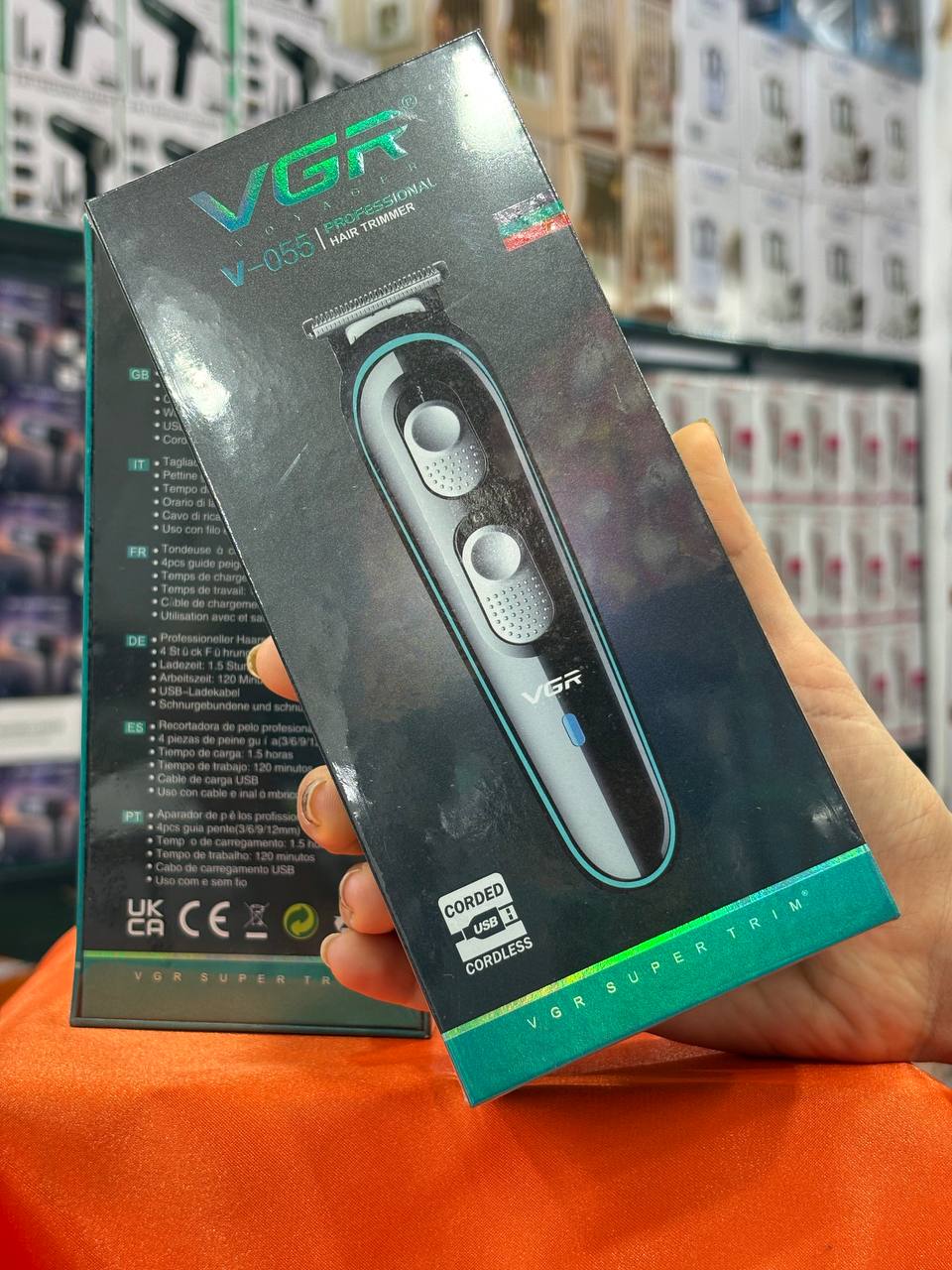 VGR V-055 Titanium Hair Clipper Direct Cut Fast Chargeاین V-055 از وی جی آر یکی از جالب ترین ماشین موهایی بود که تا حالا دیدیم! اولین چیزی که فرق داره اینه که تیغه هاش از تیتانیوم پیشرفته ساخته شدن نه استیل معمولی، این یعنی خیلی تیزتر و دوام بیشتر. دومین چیز که واقعا غافلگیرمون کرد قابلیت شارژ سریعش بود – فقط 10 تا 15 دقیقه شارژ سریع کافیه که بتونی ازش استفاده کنی! البته شارژ کاملش 90 دقیقه طول میکشه و بعدش دو ساعت کامل کار میکنه. چهار شانه با سایزهای مختلف (0 تا 12 میلیمتر) همراهش میاد که میتونی هر مدل موی که بخوای رو بزنی. وزنش هم فوق العاده سبکه، فقط 130 گرم! یعنی وقتی داری کار میکنی اصلا احساس نمیکنی دستت خسته شده. همراه دستگاه روغن روان کننده، برس، درپوش محافظ و کابل USB میاد. ما توی ازجنوب این مدل رو امتحان کردیم و تیغه های تیتانیومش واقعا فرق میکنه با مدل های دیگه.