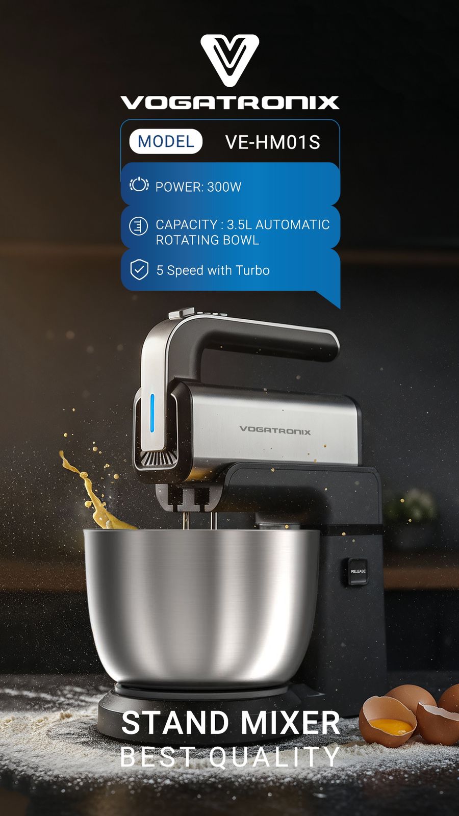 همزن برقی ایستاده ووگاترونیکس VE HM 01 S – Vogatronix VE-HM01S Stand Mixer
