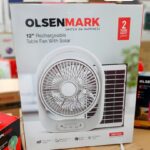 پنکه شارژی رومیزی ۱۲ اینچ اولسن مارک با پنل خورشیدی مدل OMF 1848 – Olsenmark OMF1848 12 Inch Rechargeable Table Fan with Solar Panel