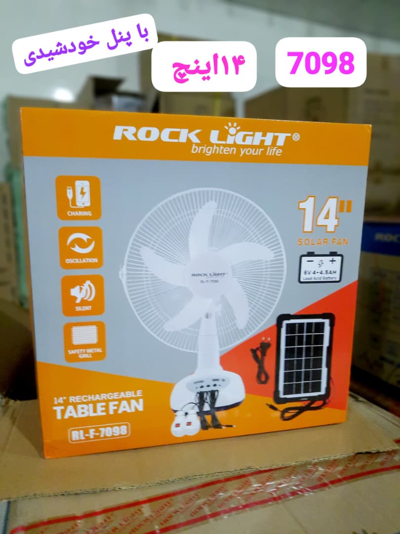پنکه شارژی و برقی ۱۴ اینچ راک لایت با پنل خورشیدی مدل RL F 7098 – Rock Light RL-F-7098
