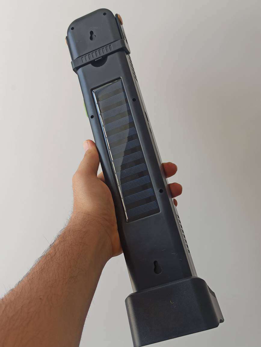 • شارژ با نور خورشید: پنل خورشیدی تعبیه شده در بدنه دستگاه ((ازجنوب)) بهت این امکان رو می‌ده که تو دل طبیعت و بدون دسترسی به پریز برق، فقط با نور آفتاب دستگاهت رو شارژ کنی.