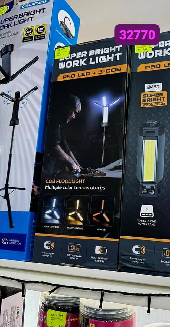 این چراغ کار همهکاره ED32770 تو کمپینگ و تعمیرات شبانه واقعاً یه انقلابه! 🌟 سه سر نور COB با دمای رنگ متفاوت (سفید، گرم، قرمز) داره که هر کدوم برای موقعیت خاصی عالی کار میکنه – نور سفید برای کار دقیق، گرم برای فضای راحت کمپ و قرمز برای دید شب بدون کور کردن چشم. پایه تاشو ۳۶۰ درجهش با قلاب آویز و مگنت قوی به هر جایی میچسبه یا آویزون میشه، پس دستات همیشه آزاده. نمایشگر دیجیتال شارژ باتری رو نشون میده، پاوربانک داخلیش گوشیتو شارژ میکنه و نور COB خیلی قویش کل محوطه کمپ رو روشن میکنه. این مدل جمعوجور و قدرتمند رو داشته باشی، شبهای کمپینگ یا تعمیر ماشین دیگه تاریک و سخت نمیگذره، هر بار استفادهش بیشتر کیف میکنی 😍