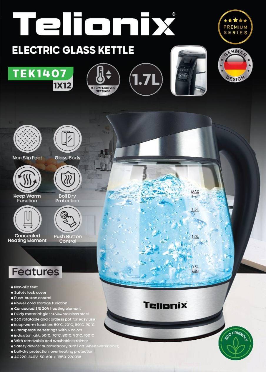 کتری برقی شیشهای دیجیتال تلیونیکس مدل TEK 1407 – Telionix TEK-1407 Electric Glass Kettle