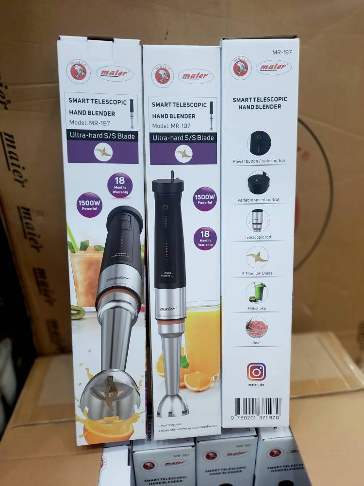 گوشتکوب برقی تلسکوپی ۱۵۰۰ وات مایر مدل MR 197 ۴ تیغه تیتانیوم – Maier MR-197 Smart Telescopic Hand Blender